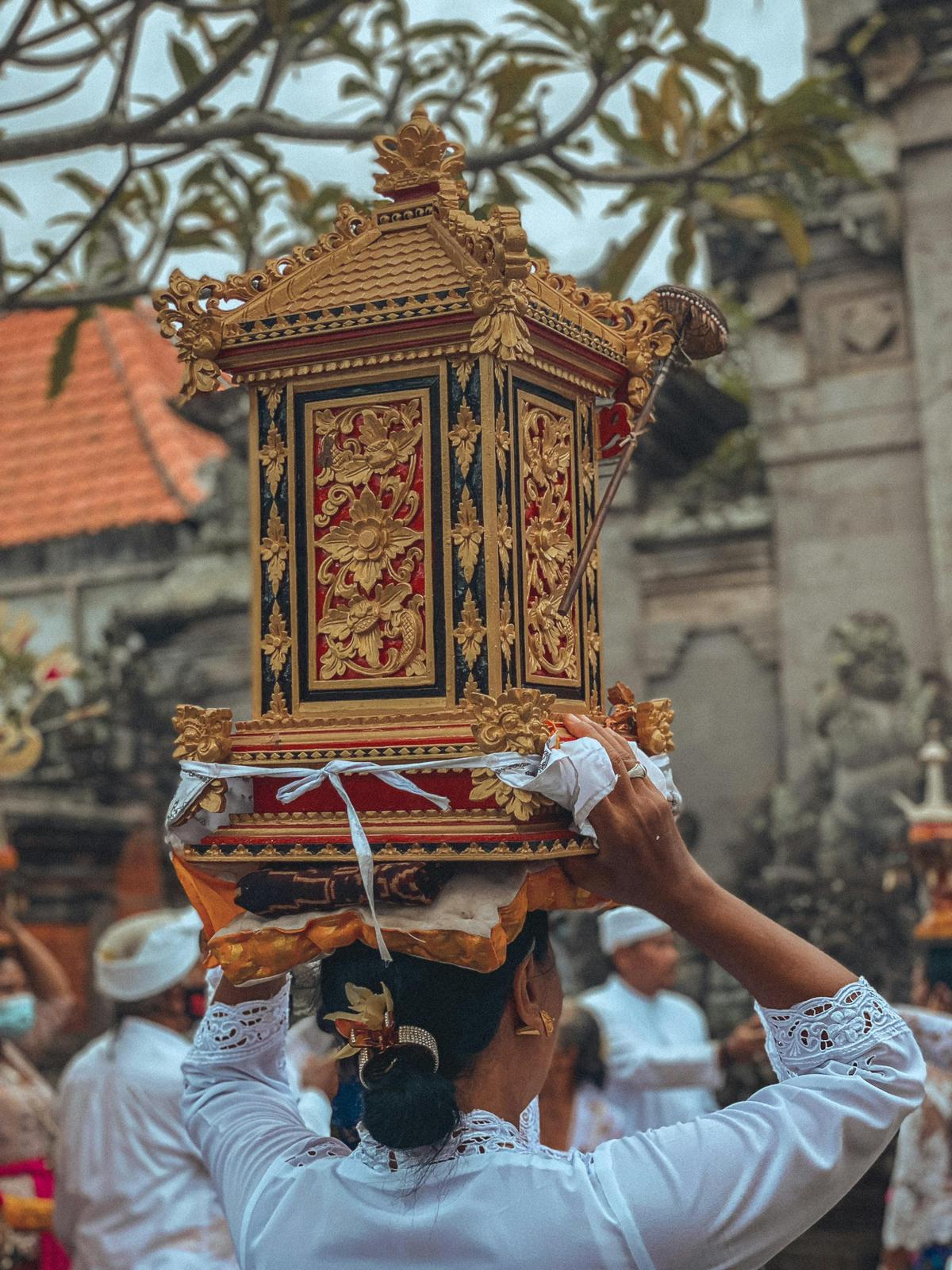 Vestimenta adecuada en templos (sarong y hombros cubiertos).
